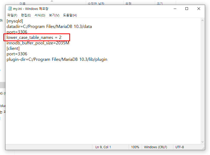 윈도우 자체의 문제인 줄 알았는데 MariaDB의 문제였다. 왜 이런식으로 defalut값을 해놓은지는 이해는 가지 않지만.