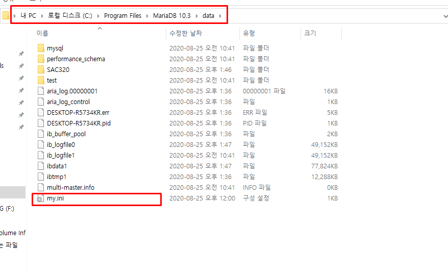 my.ini 더블 클릭 해준다.