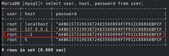 [MariaDB - (12) ] mysql 유저 중에 host 가 "::1"로 되어 있는 것은 무엇일까?