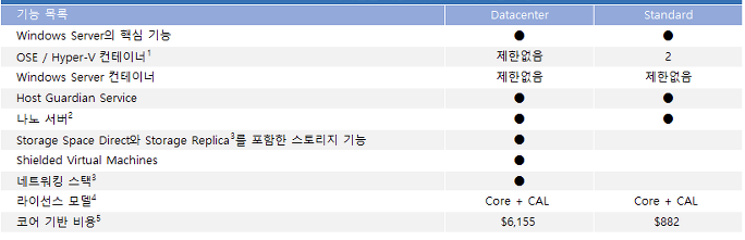 Windows Server Standard : 물리적 또는 소규모 가상화 환경을 위한 에디션