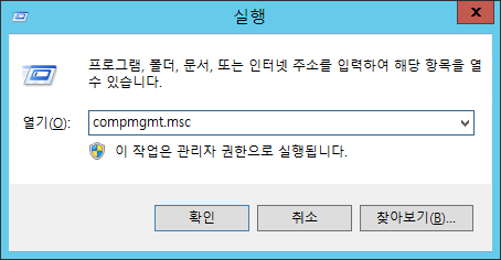 2. 입력하게 되면 컴퓨터 관리 창이 뜬다.