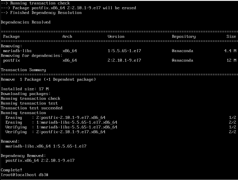 "yum remove -y mariadb-libs.x86_64"를 진행한다.