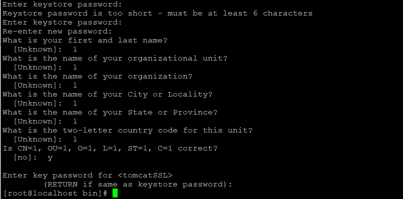 # keytool -genkey -alias tomcatSSL -keyalg RSA -keysize 2048 -keystore /opt/apache-tomcat-8.0.50/conf/keystore/tomcatSSLKey -validity 10000