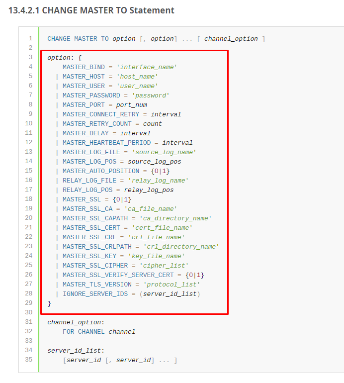 공식 문서 : dev.mysql.com/doc/refman/5.7/en/change-master-to.html