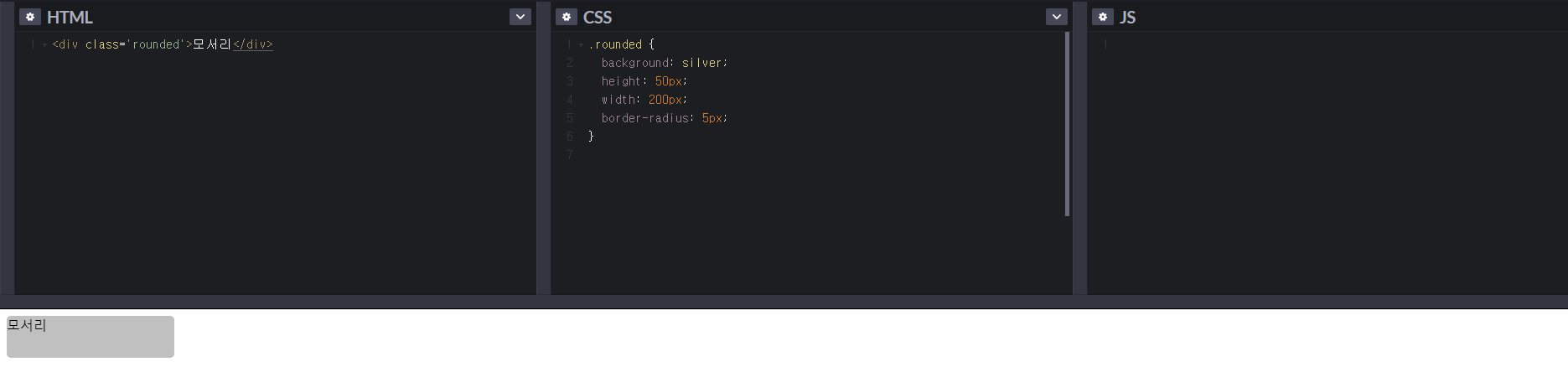<div class='rounded'>모서리</div>
