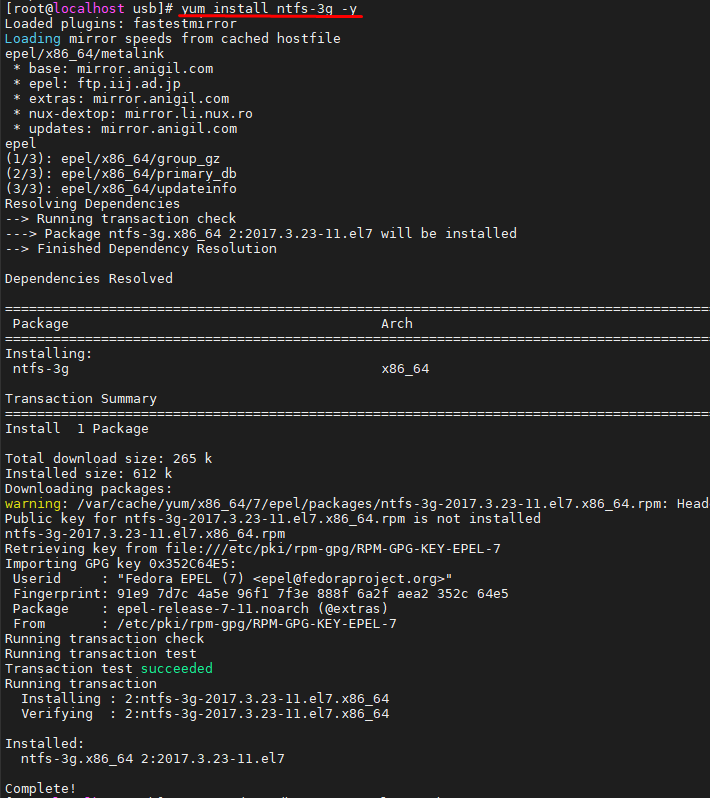 ntfs를 인식할 수 있는 패키지를 설치를 하고 진행하면 된다.