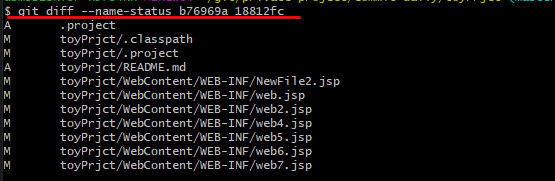 위에서 "#git diff --name-status {old_commit} {new_commit}"와 같이 명령어를 사용했는데, 이 옵션은 위에서 보이는 것처럼 파일의 성격이 나타난다.