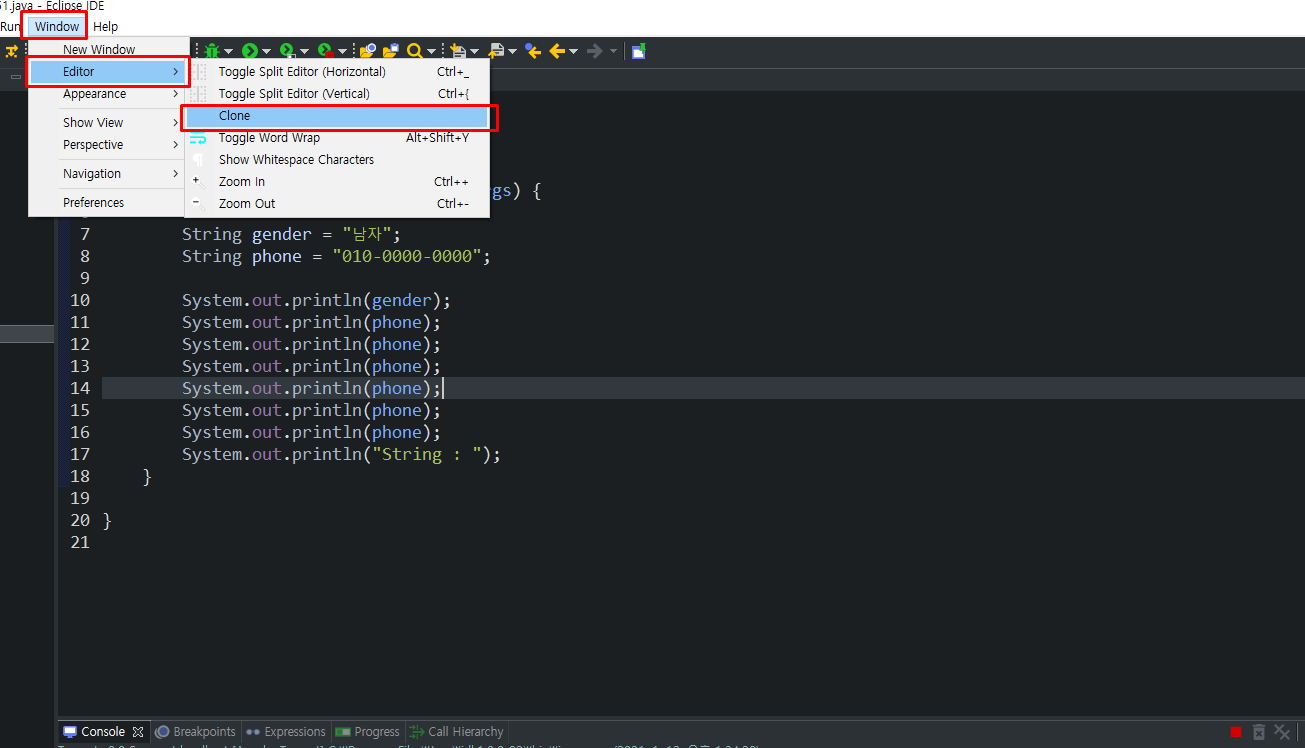 [Eclipse - 이클립스 - (11) ] 이클립스 창(에디터) 복사