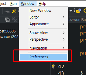 1) Window - Preferences 실행