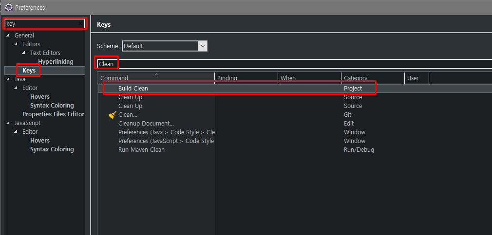 그럴 때 클린을 실행 할 텐데 마우스로 하는게 불편해서 키세팅을 찾아보았다.