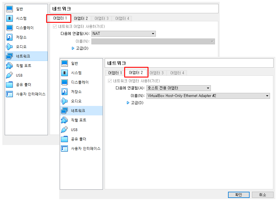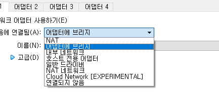 1) 먼저 네트워크 설정은 아래와 같이 설정을 진행한 상태