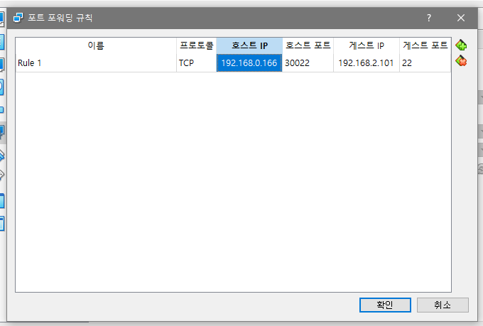 | 호스트(192.168.0.* 같은 네트워크 대역) -> 가상 |