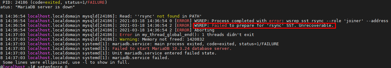 [MariaDB - Galera ] "Failed to prepare for 'rsync' SST. Unrecoverable." 오류