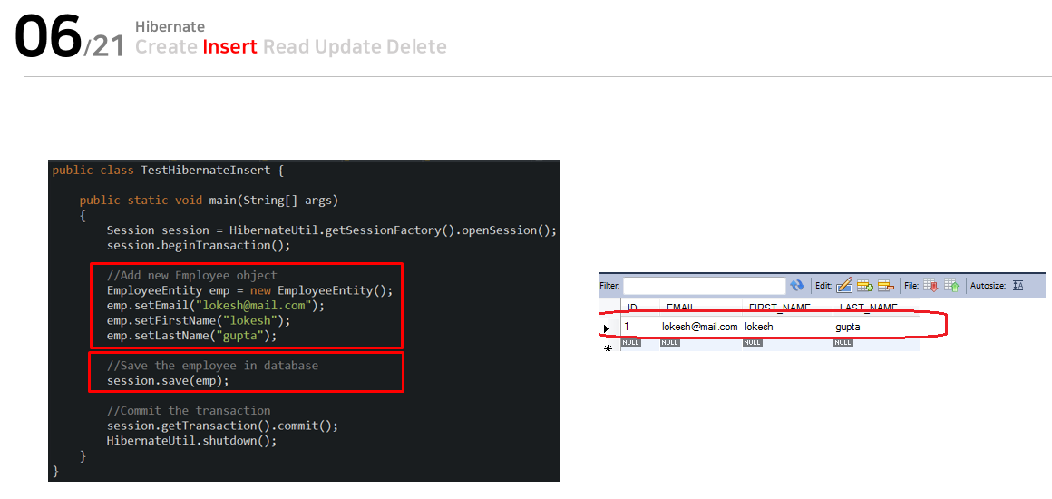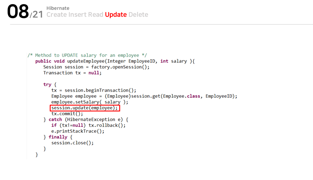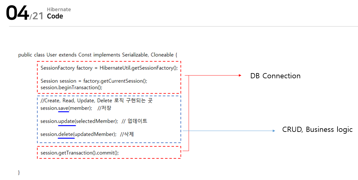 DB커넥션이 있고 바로 하이버네이트에서 제공하는 함수를 사용하여 DB에 저장, 업데이트, 삭제를 한다.