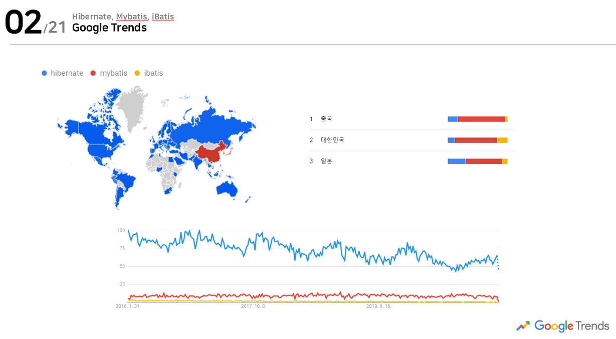 유독 한중일에서만 하이버네이트 점유율이 낮다.