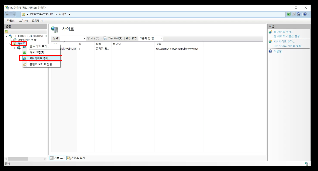 [Windows] windows ftp 설정 구축 (+ 방화벽 설정)