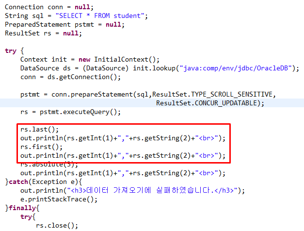 | absolute(int rowNum) | 지정한 위치로 커서를 이동한다. |