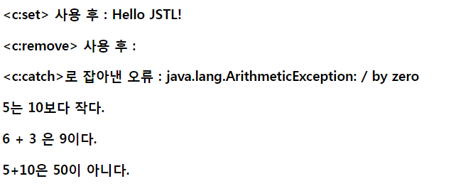 - <c:out value="출력값" default="기본값" excapeXml="true 또는 false" />
