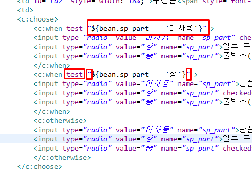 - <choose> // 보통 if else로 쓴다면 이런 형태가 된다.