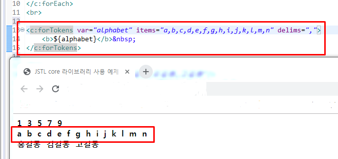 5. 반복 처리 태그 : <c:forEach>, <c:forTokens>
