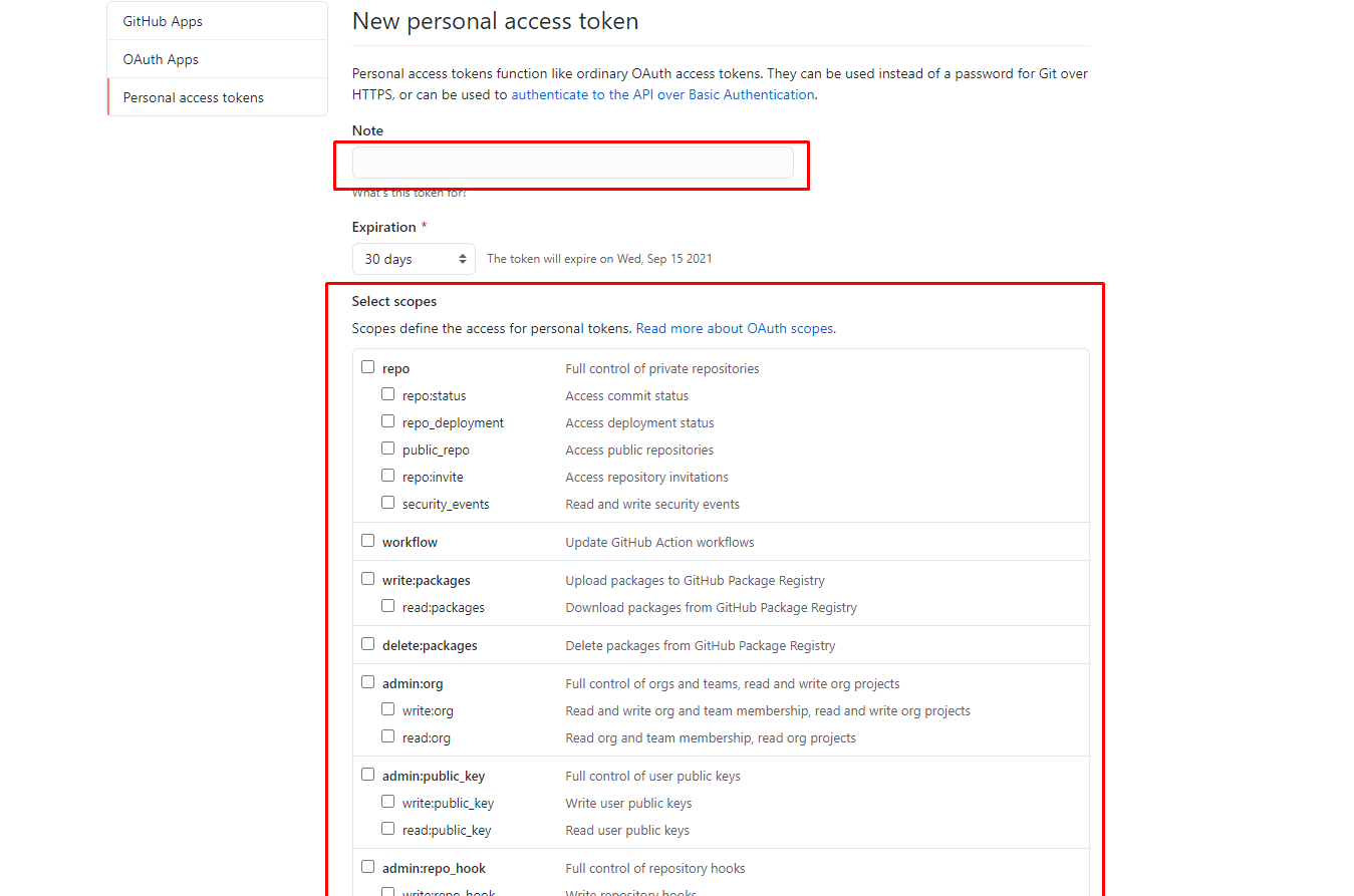 [Git] 토큰 생성 오류, 토큰 생성 방법 : "Support for password authentication was removed on August 13, 2021. Please use a personal access token instead."