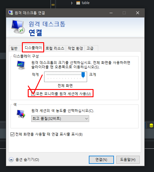 [Windows] 원격 데스크톱 연결(Remote Desktop) 더블 모니터(듀얼 모니터 -> vm 더블 모니터도 작동된다.)