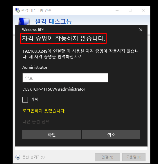 [Windows] 원격 데스크톱(Remote Desktop) 자격 증명이 작동하지 않습니다