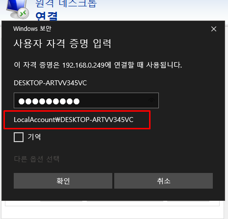 LocalAccount\ComputerName ( 예시 : LocalAccount\DESKTOP-ARTVV345VV )