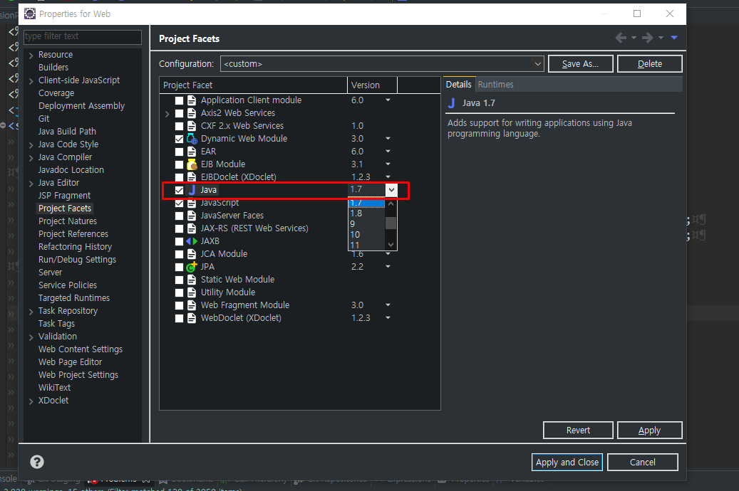 [Eclipse - error] Description Resource Path Location TypeJava compiler level does not match the version of the installed Java project facet. : 프로젝트 jdk 맞추기