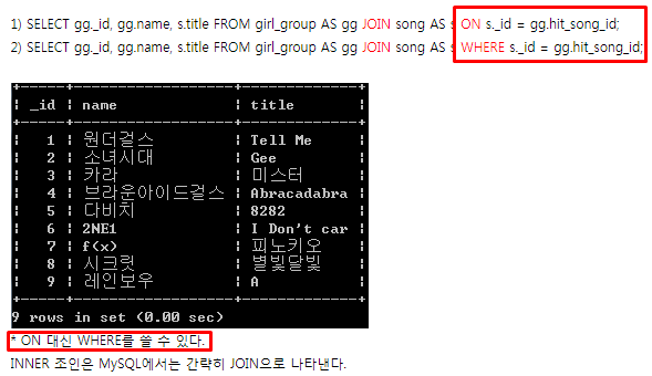 쿼리문을 작성 할 때 보통 JOIN만 쓰게되는데 이 경우 "INNER JOIN"으로 자동으로 치환된다.