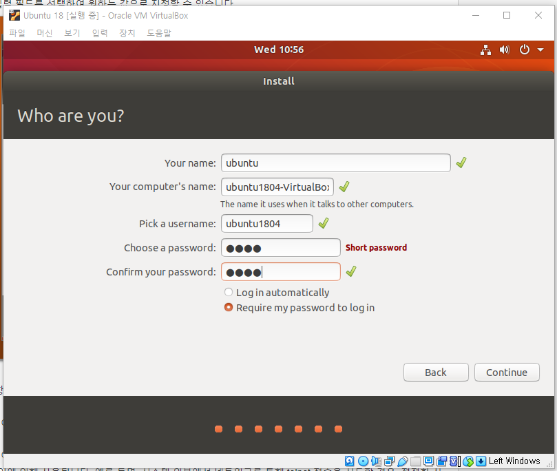 컴퓨터 이름과 사용자 이름, 패스워드 등을 체우고 넘어간다.