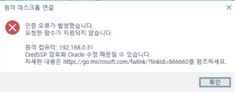 [Windows] "CredSSP 암호화 Oracle 수정 때문일 수 있습니다." 오류