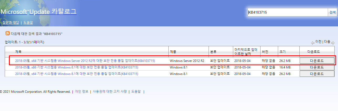 에서 2012R2에 해당하는 패치는 다운로드