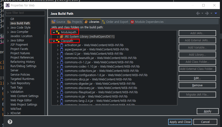 이 둘의 차이는 뭔지 궁금하게 된 계기가 이클립스 버전을 높이면서 BuildPath를 설정중이었는데 Eclipse 구버전에는 그냥 두 개 구분없이 일렬로 나왔었는데, 최신 버전을 받으니 조금 다른 UI가 펼쳐졌다. 나 같은 사람이 몇몇 있어 정리를 하고자 한다.