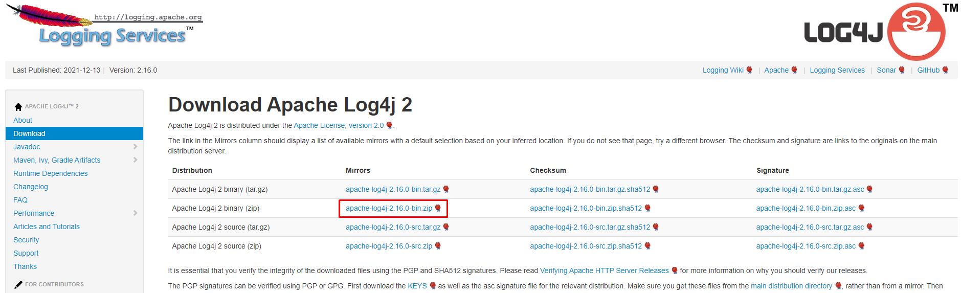 공식 사이트 : https://logging.apache.org/log4j/2.x/download.html
