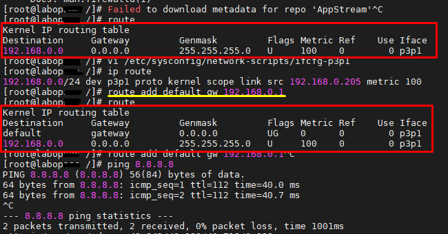 [Linux CentOS] 외부(인터넷)으로 핑이 안나갈 때, 라우터 추가.