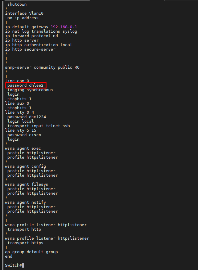 Switch(config-line)#password dhlee2