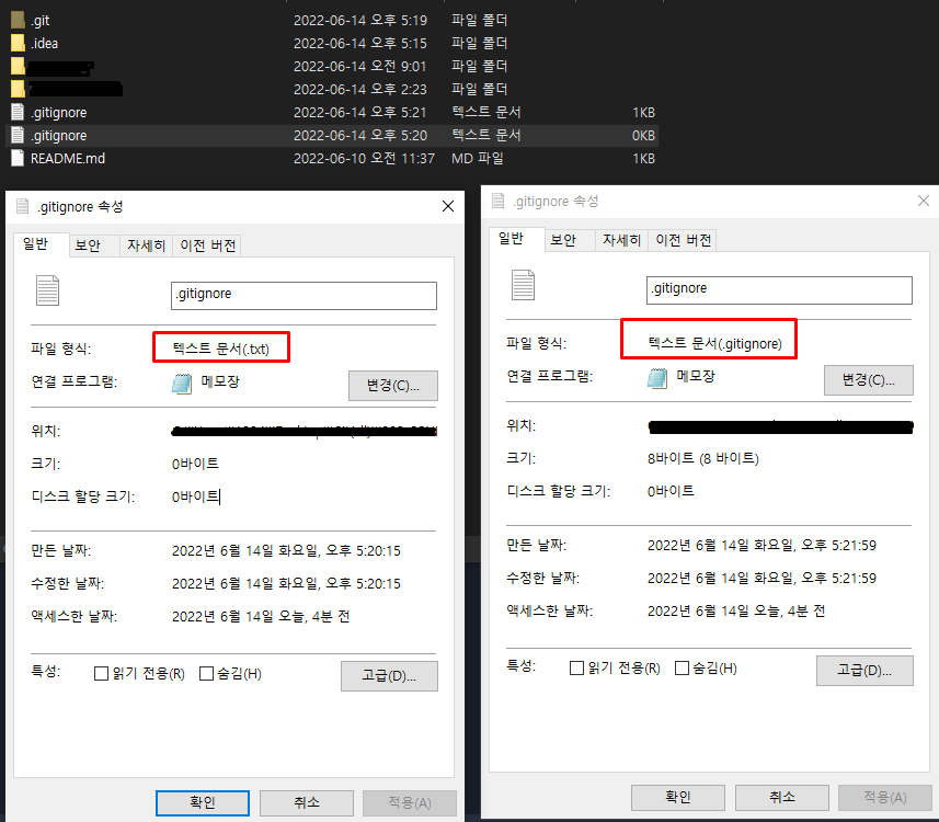 여태 텍스트 파일인 것처럼 보여서 그냥 폴더에서 txt확장자 폴더 생성하기를 하면................ 안된다! git Terminal에서 "#vi .gitignore"로 생성해야 gitignore확장자로 생성이 된다. 삽질을 하다가 결국 원인을 찾았네..